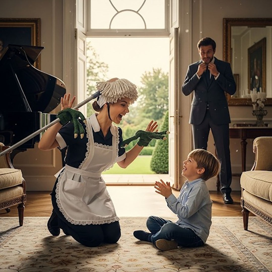De retour plus tôt que prévu d’un déplacement, Julien décida de surprendre son fils avec un nouveau jouet. En pénétrant discrètement dans la maison, il s’immobilisa dans l’entrée, stupéfait par la scène qui s’offrait à lui. Dans le salon, Camille, une serpillière sur la tête, imitait un dinosaure maladroit en poussant des grognements comiques. Léo, plié de rire, se précipita vers elle et la serra dans ses bras en murmurant :